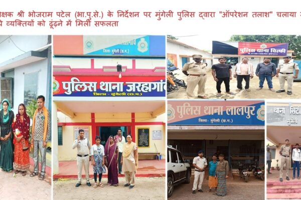 मुंगेली, 5 जुलाई 2024।पुलिस अधीक्षक श्री भोजराम पटेल (भा.पु.से.) के नेतृत्व में मुंगेली पुलिस ने “ऑपरेशन तलाश” के तहत बड़ी सफलता प्राप्त की है। इस विशेष अभियान में जिले से गुमशुदा हुए कुल 46 व्यक्तियों को खोजकर उन्हें उनके परिवारजनों से सकुशल मिलाया गया, जिससे उनके परिजनों के चेहरों पर खुशी लौट आई। “ऑपरेशन तलाश”…