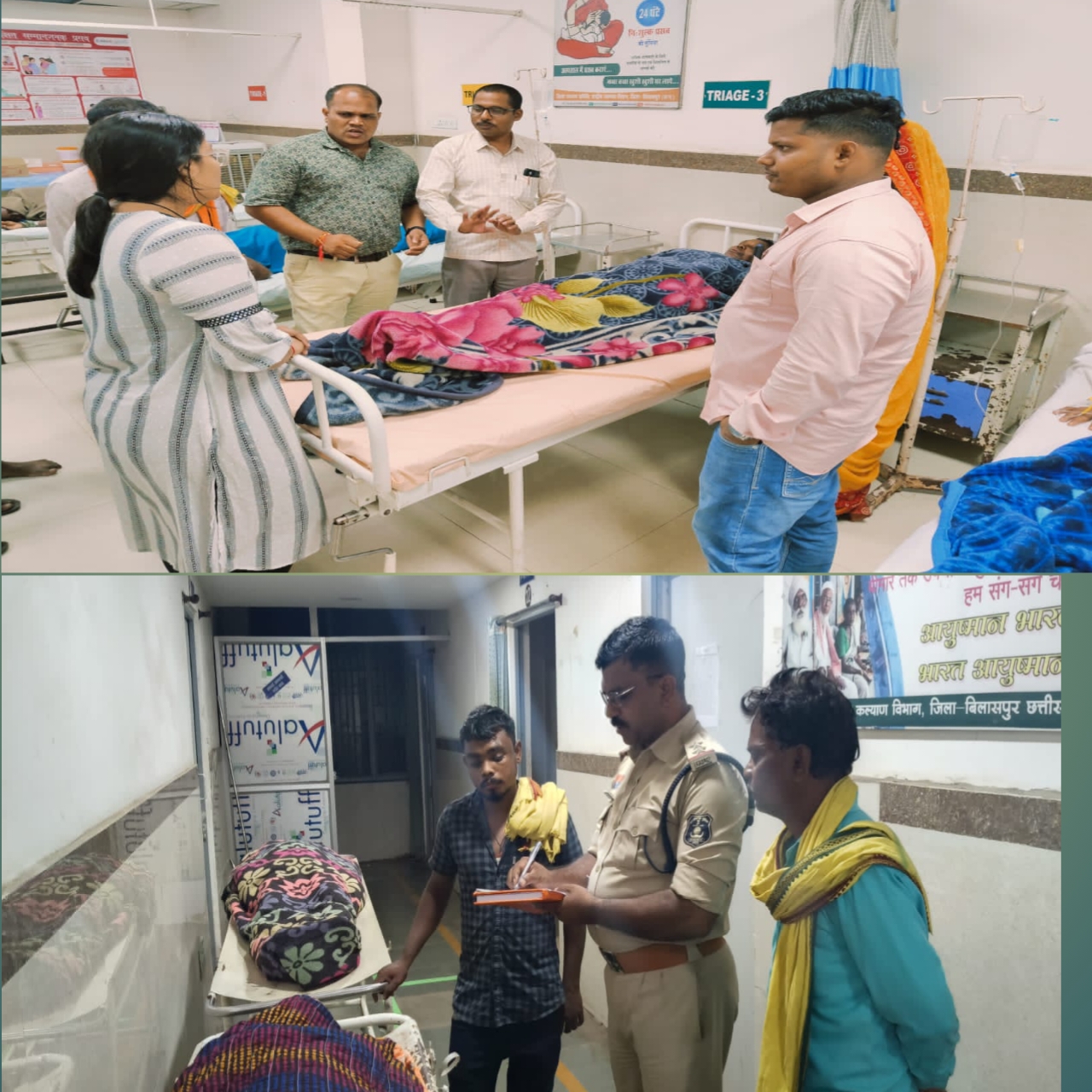 घायलों के स्वास्थ्य को देखने के लिए जनपद अध्यक्ष बिल्हा डॉ. रामकुमार कौशिक समुचित इलाज के लिए डॉक्टर, विकास खंड चिकित्सा अधिकारी एवं अन्य संबंधित अधिकारियों को आवश्य निर्देश दिए एवं घायलों के जल्द स्वस्थ होने की कामना किए ।