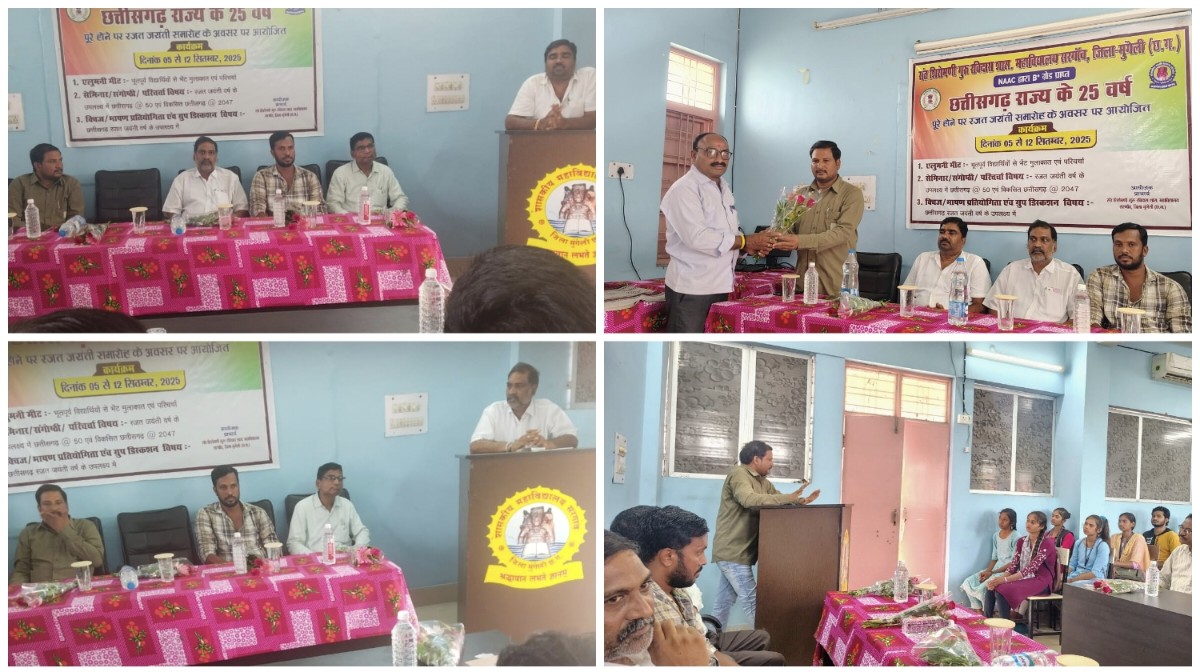 संत शिरोमणि रविदास शासकीय महाविद्यालय सरगांव में छत्तीसगढ़ राज्य के स्थापना के 25 वर्ष पूर्ण होने के उपलक्ष्य में रजत जयंती वर्ष के अंतर्गत “एलूमनी मीट एवं संगोष्ठी” का भव्य आयोजन किया गया। संगोष्ठी का विषय “विकसित छत्तीसगढ़ @50” रखा गया, जिसमें पूर्व छात्र, जनप्रतिनिधि और सामाजिक कार्यकर्ताओं ने राज्य के विकास, उपलब्धियों एवं भविष्य की रूपरेखा पर अपने विचार साझा किए।