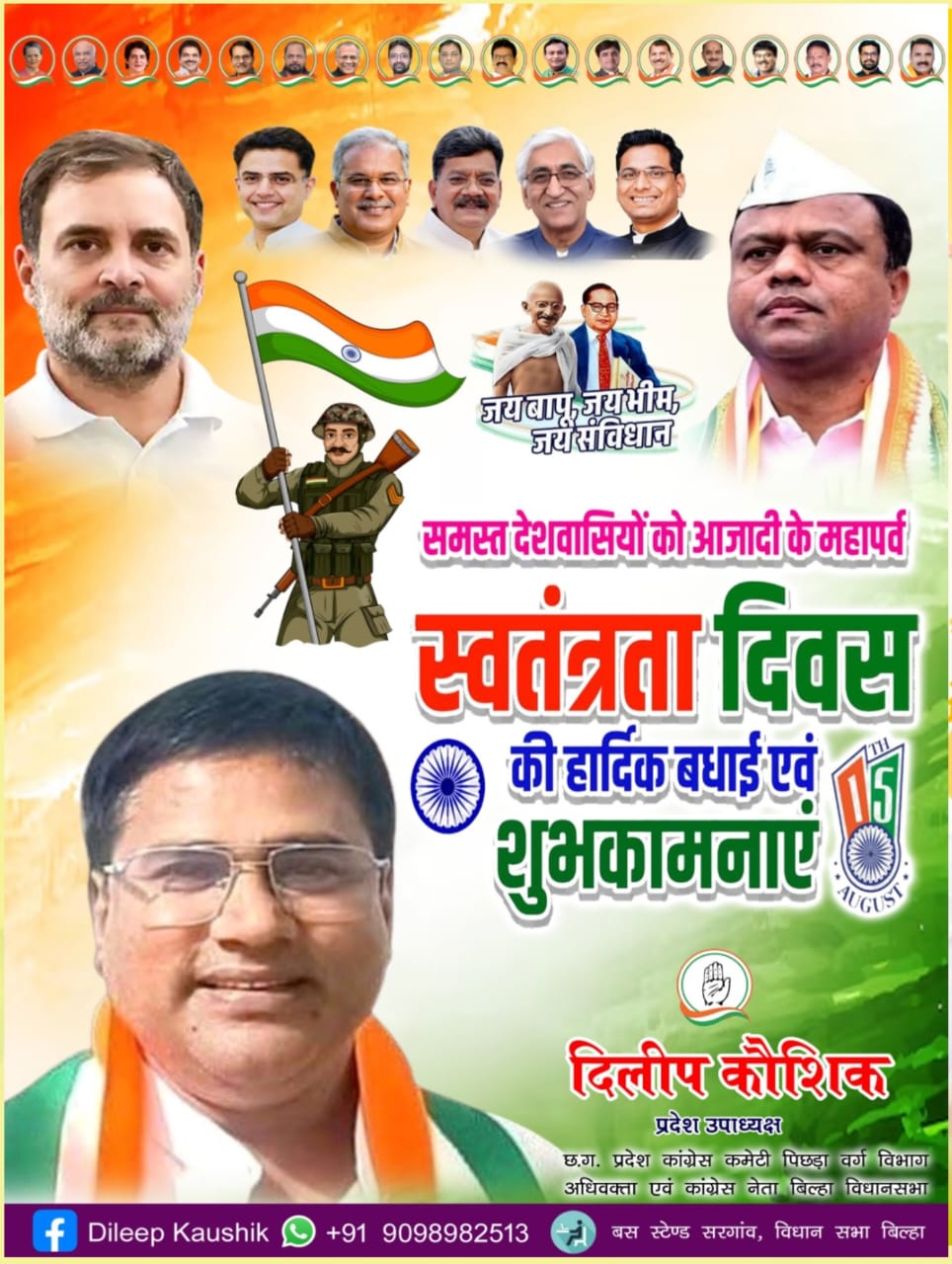 इस अवसर पर प्रमुख रूप से श्याम जायसवाल, आत्मा सिंह क्षत्रिय, हेमेन्द्र गोस्वामी, रोहित शुक्ला, स्वतंत्र मिश्रा, दिलीप बंजारा, अरविंद वैष्णव, अभिलाष सिंह, आरिफ खोखर, उर्मिला यादव, मंजू शर्मा, अनीता विश्वकर्मा, इंद्रजीत कुर्रे, राजेश छेदईया, सागर सोलंकी, जलेश यादव, भूपेन्द्र साहू, विष्णु खांडे, असद खोखर, विनय कुमार, तारणी विश्वकर्मा, सतीश यादव, मनहरण, अखिलेश साहू, राजेश सोनी, धीरेन्द्र कुमार सहित बड़ी संख्या में कांग्रेस कार्यकर्ता उपस्थित रहे।