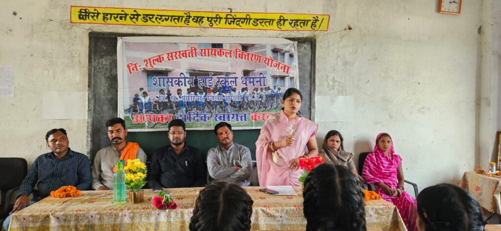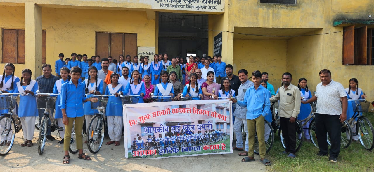 सरगांव। मुख्यमंत्री निःशुल्क सरस्वती सायकल योजना के अंतर्गत शुक्रवार को शासकीय हाई स्कूल धमनी में सायकल वितरण कार्यक्रम आयोजित किया गया। इस अवसर पर कक्षा नवमी़ की 16 बालिकाओं को निःशुल्क सायकल प्रदान की गई। योजना का उद्देश्य छात्राओं को शिक्षा के प्रति प्रोत्साहित करना और उन्हें विद्यालय आने-जाने में सुविधा प्रदान कर आत्मनिर्भर बनाना है।