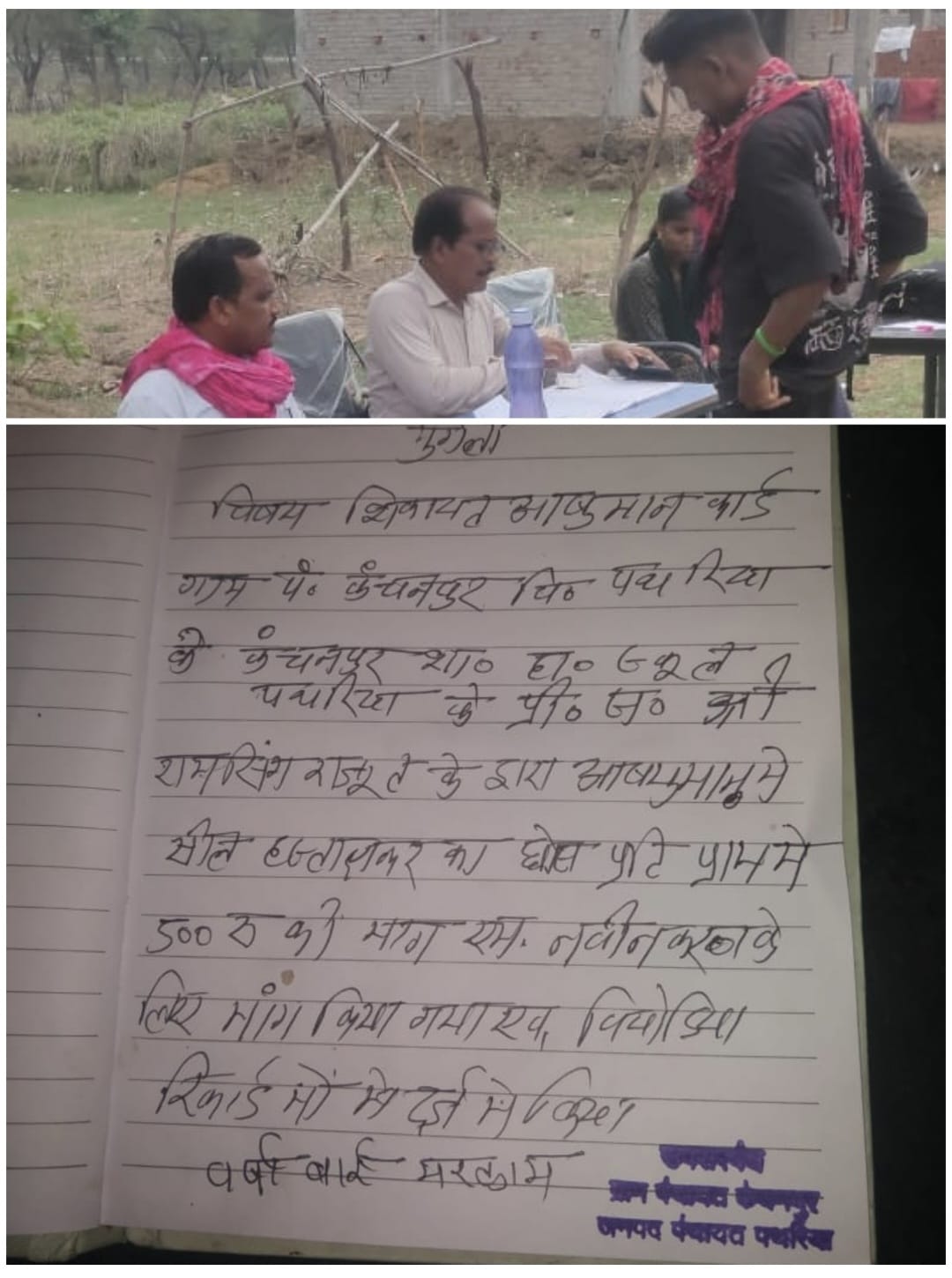 मुंगेली। आयुष्मान भारत योजना के तहत चल रहे महाभियान कार्यक्रम के दौरान मुंगेली जिले के पथरिया विकासखंड के ग्राम कंचनपुर से गंभीर मामला सामने आया है, जहां कार्ड बनाने के नाम पर ग्रामीणों से पैसे वसूले जाने का आरोप लगा है।